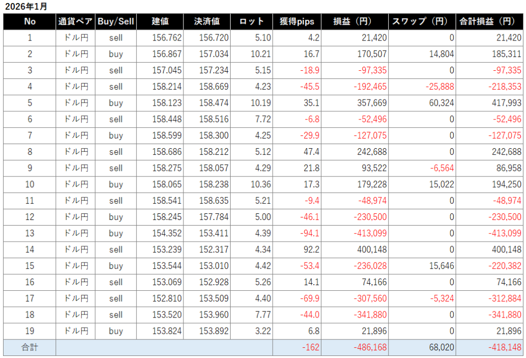 1月は後半に日米のレートチェックにより円相場が急落して早い流れに対応できなかったですね。